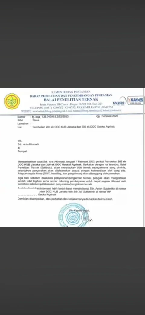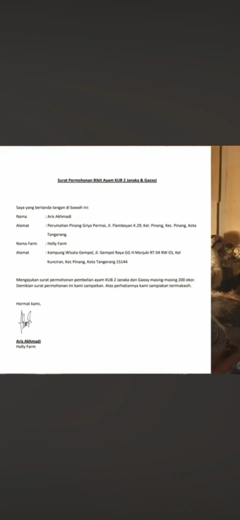 Contoh Pemesanan Dari Farm Kami, Jika tidak Surat Permohonan Order itu KW/Palsu.
